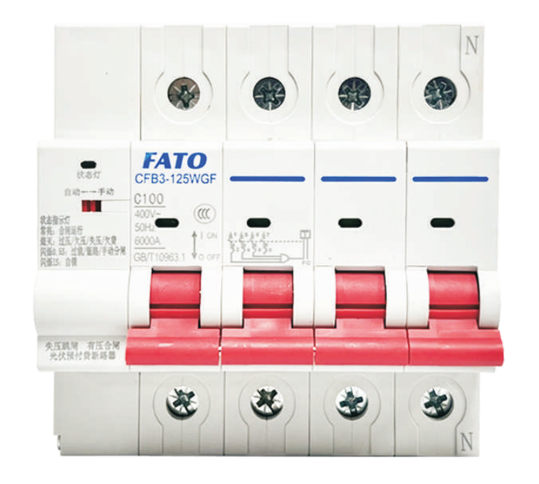 CFB3-125WGF PV grid-connected circuit breaker is a derivative of the CFB3-125W circuit breaker. It is a miniature circuit breaker with automatic reclosing function designed for photov-oltaic grid connection. It is suitable for AC 50Hz, rated current to 125A, mainly used with photovoltaic system. It can solve the problem of automatic closing of pressure detection and automatic opening of voltage by voltage loss, effectively solve the islanding effect and overload the power supply line and Short circuit protection.